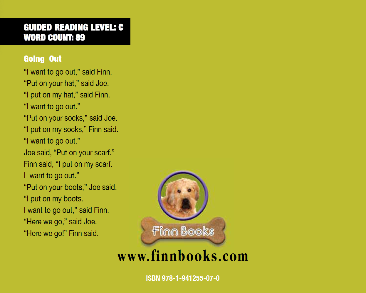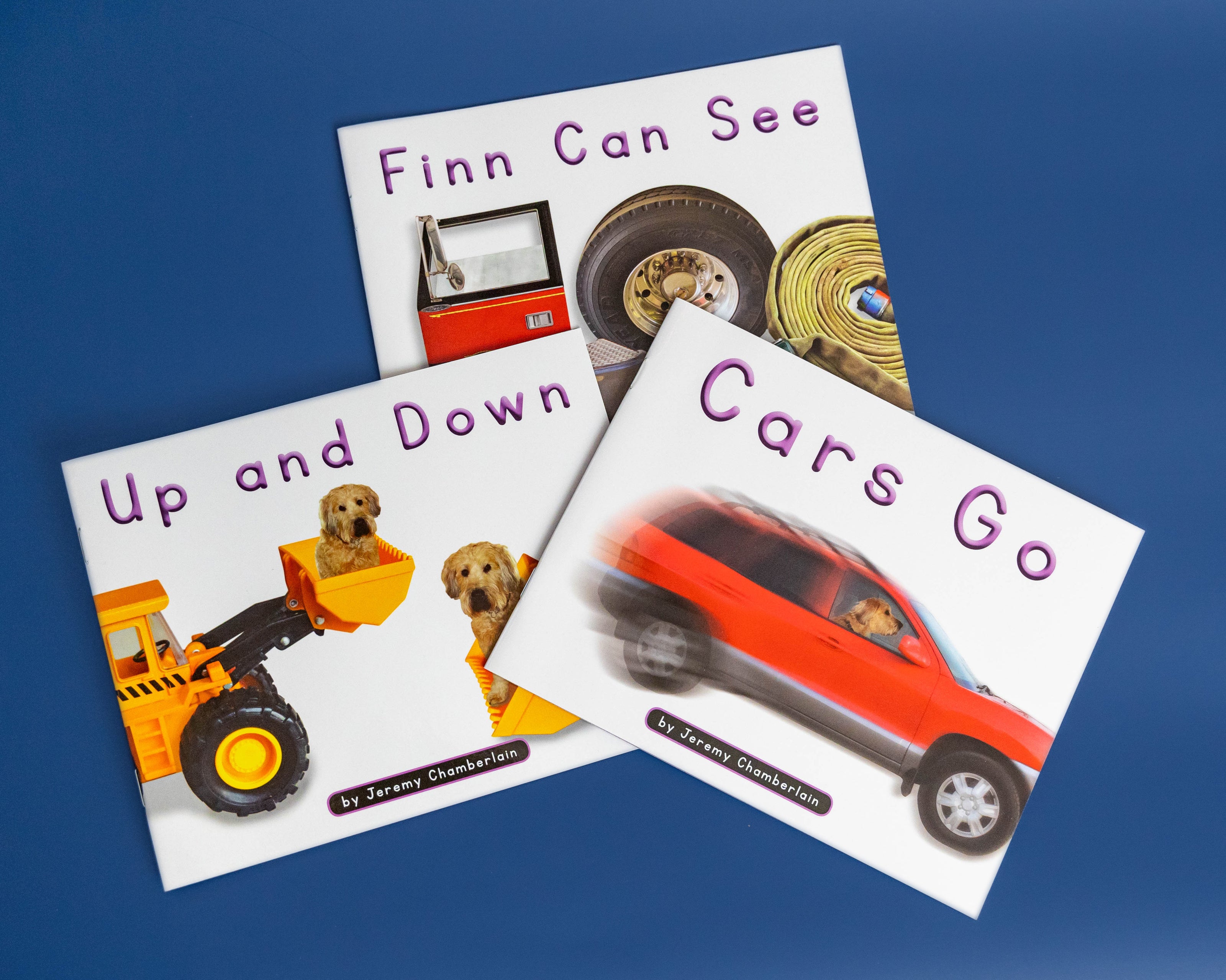 Our Finn Books Library Set is leveled, easing children into reading, helping to build their confidence and grow their love of literacy. The text in the series features high frequency words and is simplified for beginning readers, gently becoming more challenging in the later titles. All of the titles in the series feature Finn being his fun-loving, silly self.